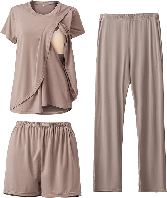 - PRODUCT INCLUDED:The postpartum nursing pajamas set includes 1 piece short sleeve nursing top+1 piece nursing shorts+ 1 piece nursing long pants,this 3-pieces maternity breastfeeding pjs set is tailored for expectant mothers and new moms.